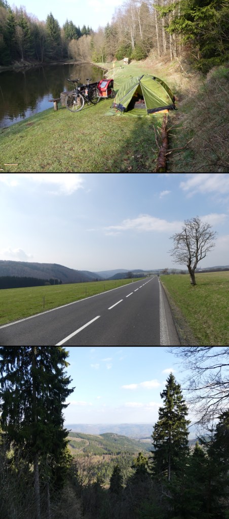 Hinter Výsluni lege ich eine Pause ein. Gerade eine weitere Steigung hinter mich gebracht, gönne ich es mir etwas zu essen. Während ich da so am Straßenrand stehe, hält eine Auto. Deutsches Kennzeichen. Mit einer Begrüßung auf deutsch hat er nicht gerechnet. So kommen wir ins Gespräch. Wo ich hin wolle, fragt er mich. Bis nach Bayern runter, antworte ich. Erstaunte Augen sehen mich daraufhin an.