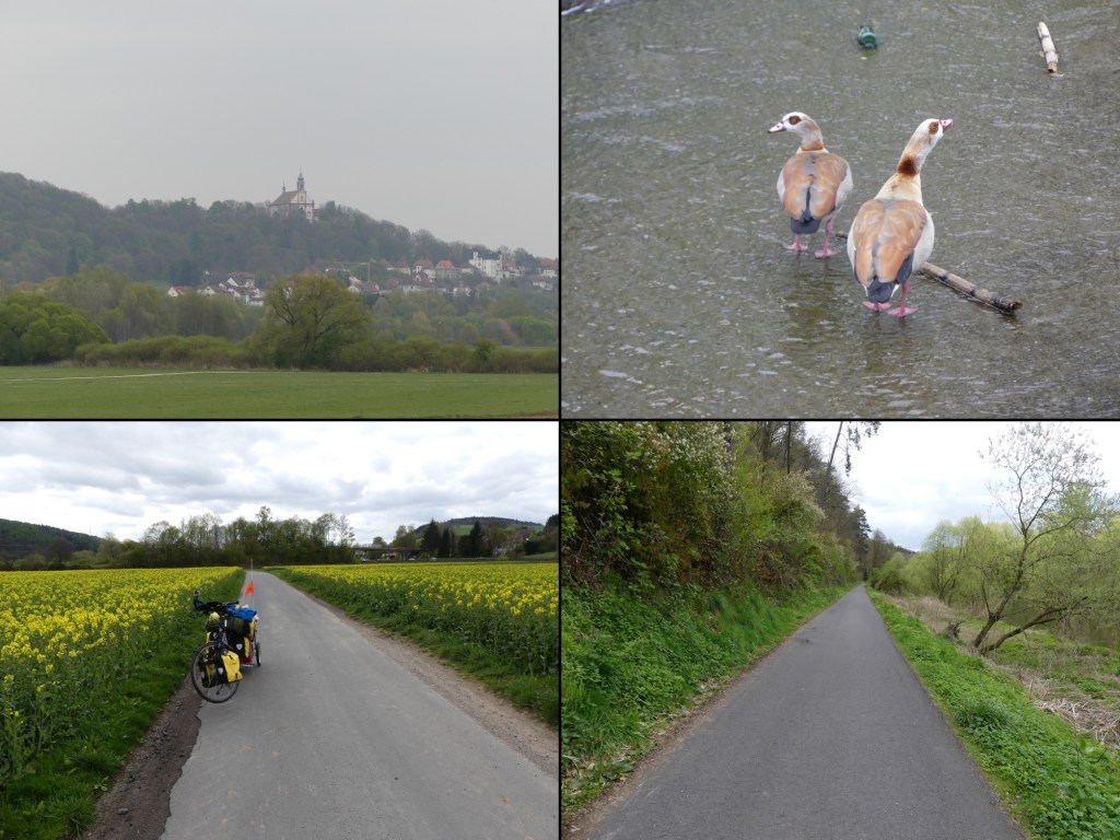 Eigentlich ist starker Wind vorhergesagt worden, doch aus irgendeinem Grund bleibt er heute aus. Soll mir recht sein. So radel ich unter einem wolkenverhangenen Himmel hindurch. Als ich Ende März losgefahren bin, war der Winter noch allgegenwärtig. Doch jetzt, vier Wochen später ist der Frühling mit großen Schritten im Anmarsch. Ich fahre an Rapsfeldern vorbei, die langsam das Blühen anfangen. Das Grün der Bäume beginnt zu sprießen. Es ist wieder ein Moment, wo mir bewusst wird, wie schön es ist. Aber auch, dass es kommenden Donnerstag bereits alles zu Ende sein wird.