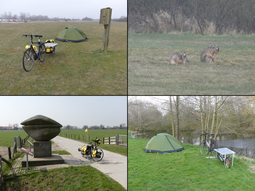 Bei Neuwarpelergroden weckt eine Schrebergartensiedlung meine Aufmerksamkeit. Moment! Das ist gar keine. Das ist ein Campingplatz. Ist ja urig. Die kleinen Holzhütten, daneben die Wohnwagen. Hätte schwören können. Nein. Nix Schrebergarten. Campingplatz! Ja, los. Hier nächtigst du heute. Die Fünfzig leuchtet auf dem Tacho. Alles erreicht, was gewollt war. Nach anfänglicher Ablehnung des Betreibers bekomme ich doch einen Zeltplatz. Ablehnung deswegen, da er den Zeltbereich gerade ziemlich ramponiert hat. Es wurden einige Bäume weggenommen, wodurch der Untergrund doch recht gelitten hat. Aber, da mich das nicht die Bohne stört, bekomme ich ein Plätzchen. Es stehen aber noch genug, was das Fleckchen schön vor dem Wind schützt.
