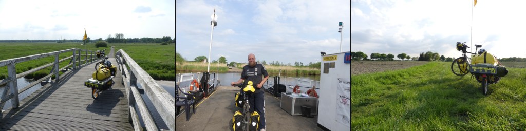 Die Ostefähre von Brobergen ist das nächste Zwischenziel. Worüber ich mir jedoch keinen Kopf gemacht habe, ist, wann die Letzte am heutigen Tag fährt. Um sechs? Zwei Stunden noch und etwas mehr als zwanzig Kilometer. Wenn Du so fährst, wie letztens, wird das wirklich knapp. Also in die Pedale getrampelt. Du musst Kilometer reißen, wenn du nicht den Umweg über Bremervörde machen möchtest. Der Wind spielt mir dabei gehörig in die Karten. Ich habe ihn im Rücken und ich glaube, so schnell bin ich mit diesem Gespann noch nie gefahren. Weit über zwanzig Kilometer in der Stunde. Das Navi pendelt bei der angepeilten Ankunftszeit immer um fünf Minuten hin und her.