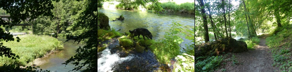 Kurz hinter der Ortseinfahrt zu Lungsdorf trete ich auf die Bremse. Ein, nennen wir ihn mal Kiosk, steht am Straßenrand. Das Leben brummt hier förmlich. Viele Leute sitzen auf den Holzbänken und gönnen sich ein Stück Kuchen oder etwas anderes. Wandersleute sind auch nicht wenige unterwegs. Radreisende. Ich lasse Lotte aus dem Auto und gehe die paar Schritte über die hölzerne Brücke zur anderen Flussseite. Ab hier ist der Kopf sinnbildlich leer. In einem Cartoon würde man jetzt wahrscheinlich bei mir im Oberstübchen eine Grille zirpen hören. Alles ist auf das Umfeld ausgerichtet. Die Augen verschlingen das Landschaftsbild. Die Farben. Die Nase saugt jeden noch so dezenten Duft auf. Die Ohren ergötzen sich am Plätschern der Pegnitz.