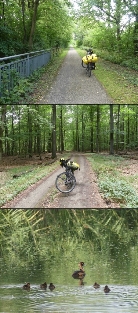 Ich will nun aber nicht über das Leben philosophieren. Ich habe eine Etappe vor mir. Eine Reise nach Hause. Über den Osten von Hamburg. Nachdem ich alles wieder am Fahrrad verstaut habe, verabschiede ich mich von meinen Nachbarn. Ich wünsche dem Pärchen für ihren weiteren Tourverlauf alles Gute. So schwinge ich mich schließlich wieder in den Sattel. Um sicher zugehen, dass ich nicht wieder auf die Bundesstraße vom Vortag stoße, gebe ich anfänglich den Ort Travenbrück in das Navi ein. Nun komme ich an Wegen entlang, die ich mir gestern auch gewünscht hätte. Sicher sind es noch Verkehrsstraßen, aber es geht über Tingeldörfer. Die Fahrbahnen gehen auf und ab. Winden sich hier um eine Erhebung. Schlängeln sich dort zwischen zwei Hügeln hindurch. Ich muss ziemlich viele Steigungen bewältigen. Sie sind alle überaus moderat, das ja. Höhenmeter mache ich auf die Menge an Steigungen dennoch. Wer hier wohnt, muss kein Geld für die Muckibude ausgeben. Zumindest nicht, um abzunehmen. Es genügt ein Fahrrad. Oder Inliner. Oder einfach Laufen.