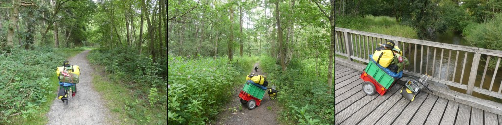 In der Siedlung hinter zu werde ich von einem älteren Herrn angefahren, warum ich meinen Hund quälen würde. Die Hitze und dann der »schwere« Rucksack auf Lottes Rücken. Ein Utensil, das ich eigentlich mehr als Eyecatcher angeschafft habe. Ähnlich, wie der Anhänger, den ich letztes Jahr auf der Deutschland/Tschechien-Tour dabei hatte. Um die Blicke auf mich zu ziehen. Um mit Leuten ins Gespräch zu kommen. Das ist nun die Kehrseite der Medaille. Auch mit solchen Figuren muss man sich dann auseinandersetzen. Dieser Typ rennt bestimmt auch hinter seinem Enkelkind hinterher und hebt es über das Hindernis, weil Klettern zu gefährlich sei. Und am Ende hat er einen Angstkomplex zu verantworten. Es folgen einige Wortwechsel, ehe ich weiterziehen kann.