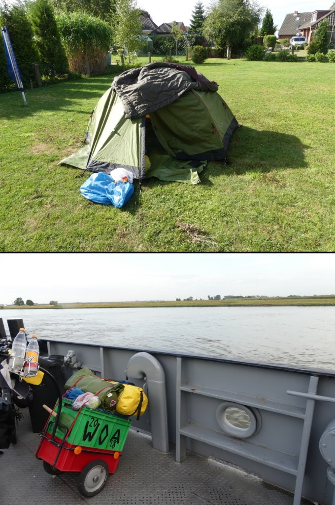 Der Bruder ist unterdessen rübergekommen und hat sich über das anfänglich halb aufgebaute Zelt gewundert. Oma und Opa sind auch rausgekommen. Es wird sich angeregt unterhalten. Es wird gelacht. Und es gibt Bier. Zum Schluss kann ich sogar den Kopf so frei bekommen, dass ich endlich die Erlebnisse von einem der vergangenen Tage aufschreibe …