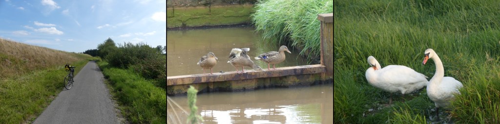 Unterwegs fällt dann die Entscheidung. Ich streiche Harsefeld von der Tourroute. Es würde zu spät werden. Was nicht das übermäßige Problem wäre. Ich kann ja am nächsten Tag ausschlafen. Aber, nein. Auf Richtung Horneburg und dann querfeldein über die Äcker nach Ladekop. Es reicht für heute. Ich habe dann viel gesehen. Bin vielen Menschen begegnet. Sei damit zufrieden, denke ich so im Stillen. Zwischendrin noch kurz gestoppt und ein Bild von einem Schwanenpaar gemacht. In Ladekop selber pausiere ich dann eine weitere Stunde. Der ein oder andere versucht mich dann doch für die Zeltfete zu motivieren. Was ich jedoch dankend ablehne. Als dann das erste Mallorca-Gröl-Lied an mein Ohr dringt, ist das schließlich mein Startschuss zur Heimfahrt.