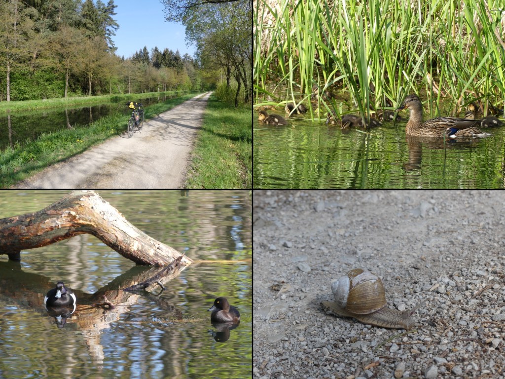 Im Bereich der Stadt begegne ich noch der einen oder anderen Person. Dagegen ist Richtung Berching der Weg wie ausgestorben. Also menschentechnisch. Tiere gibt es hier zuhauf. Enten schwimmen ihre Runden auf dem Gewässer, oder sitzen auf Bruchholz. Buchfinken und andere Singvögel schwirren durch die Luft. Eichelhäher tauchen vereinzelt auf. Elstern. Das Wetter zeigt sich heute von seiner schönsten Seite. Die Temperaturen sind angenehm und so schmelzen die Kilometer zu meinem ersten Zwischenziel Beilngries mehr zäh. Warum Das? Immer wieder halte ich an und mach hier oder dort ein Bild.