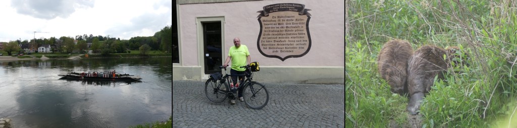 Neben der Fähre gibt es auch noch Ausflugsdampfer, die Touristen von Kelheim direkt zum Kloster bringen. Eine dritte Attraktion sind lang gezogene, schmale Holzboote, die nochmal etwas ganz Besonderes darstellen. Deren Kapitäne aber recht eigen sind. Um Zeit zusparen frage nach einer Mitnahme direkt bis nach Kelheim. Es wird verneint. Da ich alleine bin, wäre eine solche Fahrt rechnerisch unwirtschaftlich. Stattdessen setzt man mich nur auf die andere Flussseite über. Kaum stehe ich dort, bringt ein weiteres Boot Fahrradfahrer den Fluss hinab. Zwei an der Zahl. Ein Radler lohnt sich nicht, aber zwei sind rentabel? Wut steigt in mir auf. Aber was soll ich mich ärgern? Die Herren sind eigen, das sagte man mir im Vorwege. Also beweg dich wieder über das Hochplateau.