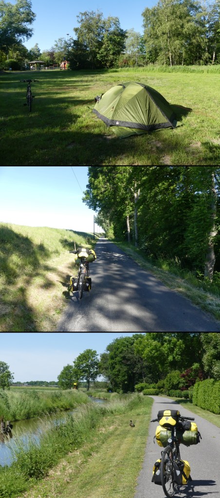 An unserem Gewerbepark am Elbdeich trennen sich dann unsere Wege. Ich habe jetzt noch knapp zwei Kilometer vor mir. Ich kann die Dusche schon rufen hören. Auch muss ich mir die Birne kühlen, die ich mir am heutigen Tag gehörig verbrannt habe.Getreu dem Motte: Ein Sommer ohne Sonnenbrand ist kein richtiger Sommer. Ich wünsche den beiden für ihre Weiterreise alles Gute und rausche die Deichschräge hinunter. Einmal noch rechts und links und dann rumpel ich schon über das Kopfsteinpflaster unserer Auffahrt. Drei Etappen sind abgeradelt. Jetzt muss ich mich dem Ansturm eines überglücklichen Hundes geschlagen geben und dann baumelt die Seele die letzten Stunden dieses Pfingstwochenendes irgendwo in der Gegend herum.