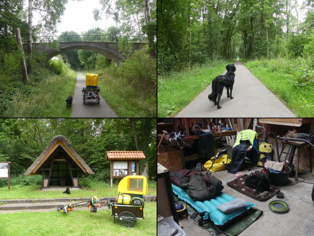 Ab Kettenburg Richtung Walsrode habe ich dann wieder einen Fahrradweg. Leider zieht der Himmel immer weiter zu und erste Tropfen fallen. Ich habe ein weiteres Mal in einem Häuschen eine Pause eingelegt und beobachte den Verlauf. Es nützt nichts. Die Regenklamotten müssen her. Bis Ebbingen stapfe ich weiter. Dann wird der Niesel kräftiger. Die Tröpfchen größer. Beim letzten Haus auf der rechten Seite, einem alten Bauernhof, biege ich ein. Ein alter Herr macht die Tür auf. Ob ich hier in der Scheune schlafen kann? Er könne das nicht beantworten. Dazu müsste ich an der Rückseite klingeln. Nach kurzer Erklärung meiner Reise erhalte ich schließlich an der Gebäuderückseite das »Okay«. Man ermöglicht mir das Aussitzen des Regengusses in der Scheune. Man möchte aus Vorsichtsgründen zwar meine persönlichen Daten, damit kann ich aber leben. So baue ich mein Lager zwischen Werkbänken und Gartengerätschaften auf. Auf dem alten Wellblechdach prasseln unterdessen die Tropfen. Das ist jetzt egal. Ich bin verhältnismäßig trocken geblieben. Morgen sieht die Welt sicher wieder ganz anders aus.