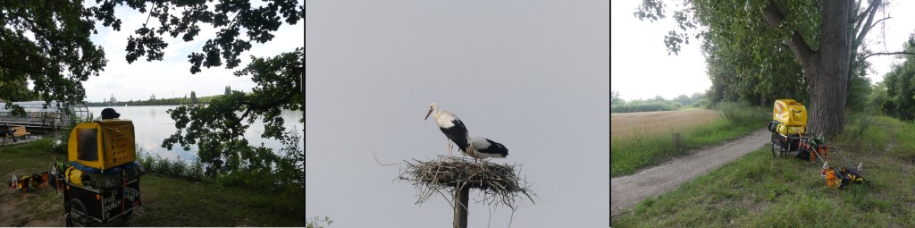 Den gestrigen Tag haben Lotte und ich wirklich gebraucht. Sie pendelte nur von der Terrasse auf die Rasenfläche und zurück. Hat zwischendrin die Füllung aus ihrem Plüschtier herausgerupft, aber ansonsten nichts weiter getan, als geschlafen. Björn und seine Frau Ira haben uns einen tollen Ruhetag beschert. Es fällt wirklich schwer, wieder auf die Straße zu gehen. Ich hätte noch einen weiteren Tag faul sein können. Dann würde ich aber wohl meinen zeitlichen Rahmen sprengen. Also den inneren Schweinehund K.O. geschlagen und alles wieder zusammengepackt. Björn hat mir sogar seine Sportbandage für das rechte Fußgelenk geliehen. Mal schauen, wie es sich in den nächsten Stunden und Tagen entwickelt. So rumpel ich davon.